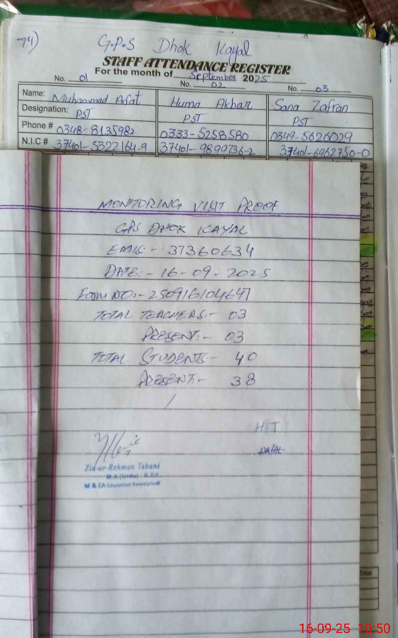 | EMIS Code: 37360634 | Name of School: GPS DHOK KAYAL | |||