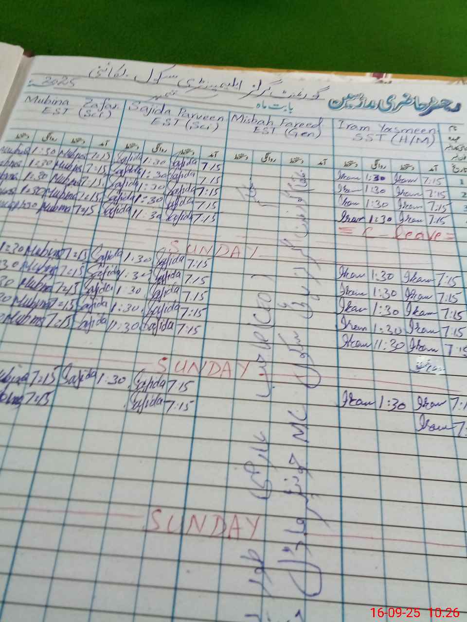 | Leave | Duty | Absent | Maternity | Medical | Ex- Pak |