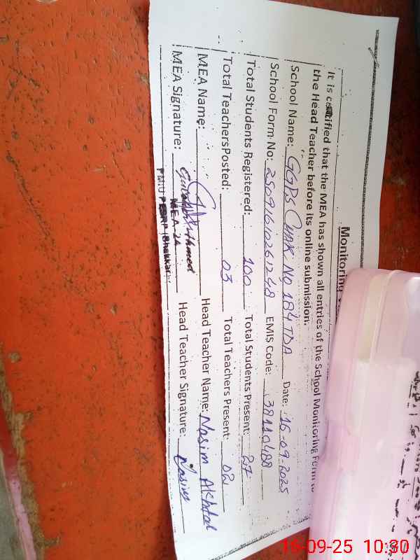 | EMIS Code: 38110488 | Name of School: GGPS CHAK NO 184 TDA | |||