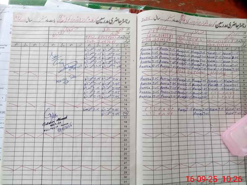 | Name: NA**** AK**** Designation: (School Headmaster's/Headmistress's) PTC/JV Phone/Cell Number: 03**** |