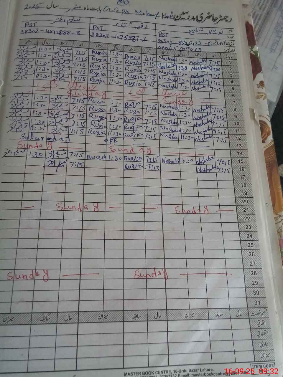 | CNIC | Full Name | Designation | R/C | Absence During Last Calender Month |