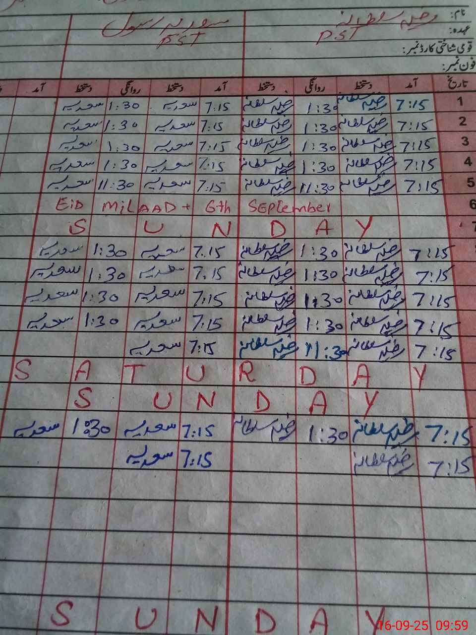 | Name: SA**** RA**** Designation: (School Headmaster's/Headmistress's) PST Phone/Cell Number: 03**** |