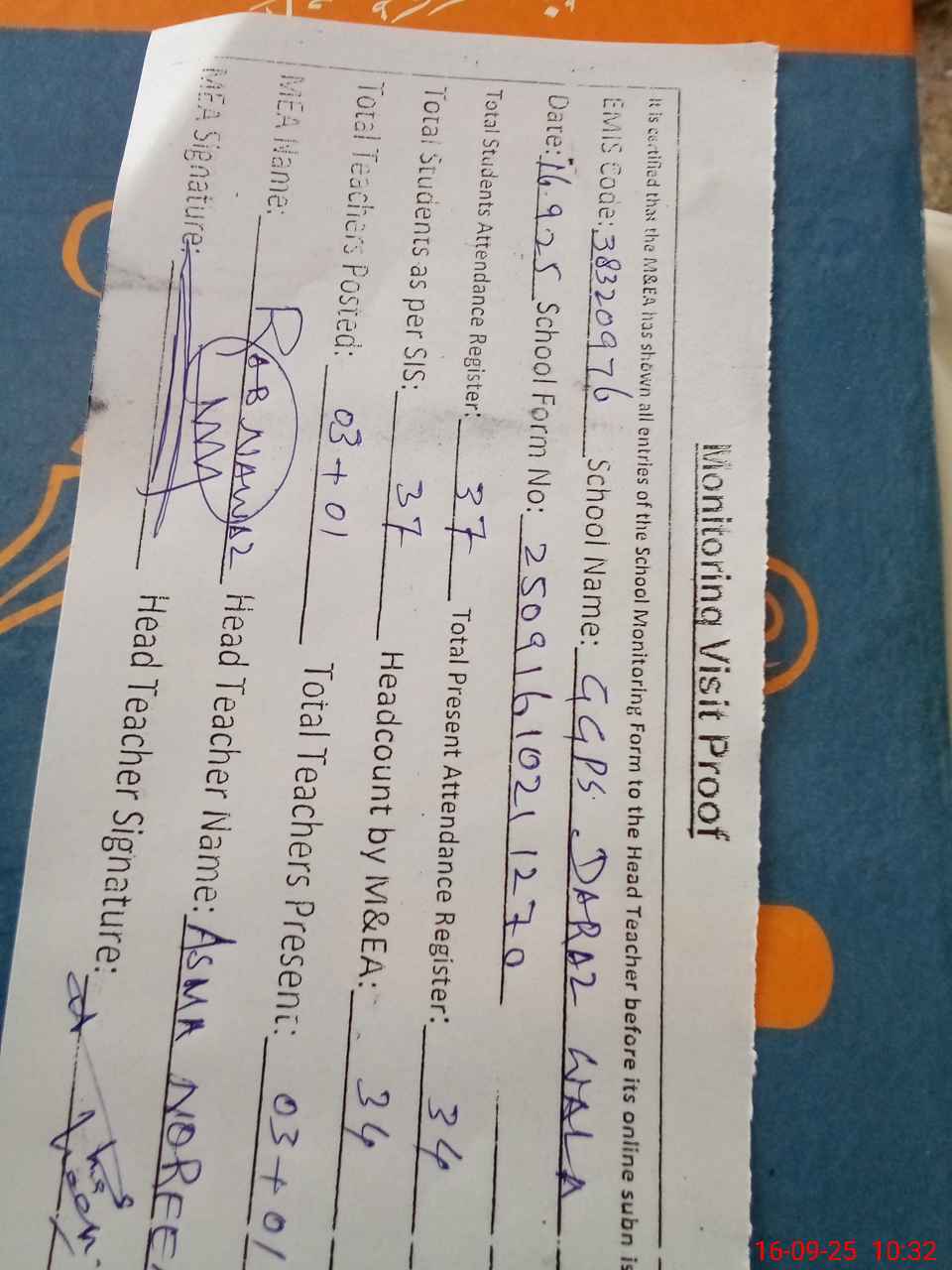 | EMIS Code: 38320976 | Name of School: GGPS DRAZ WALA | |||