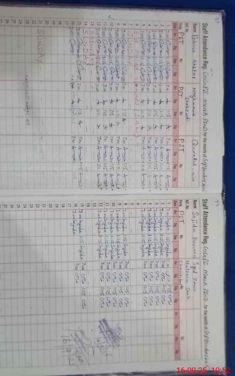 | CNIC | Full Name | Designation | R/C | Absence During Last Calender Month |