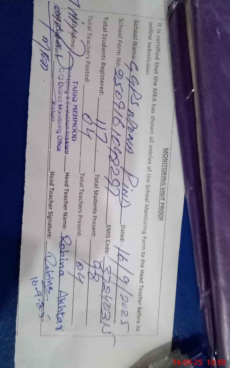 | EMIS Code: 37240315 | Name of School: GGPS MONA PIND | |||