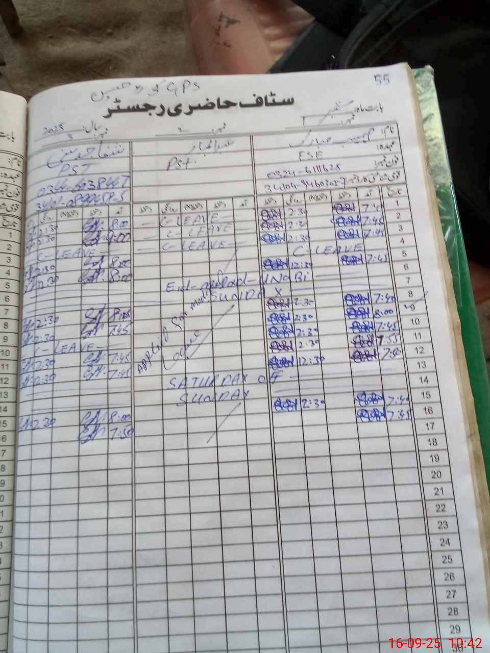 | Leave | Duty | Absent | Maternity | Medical | Ex- Pak |