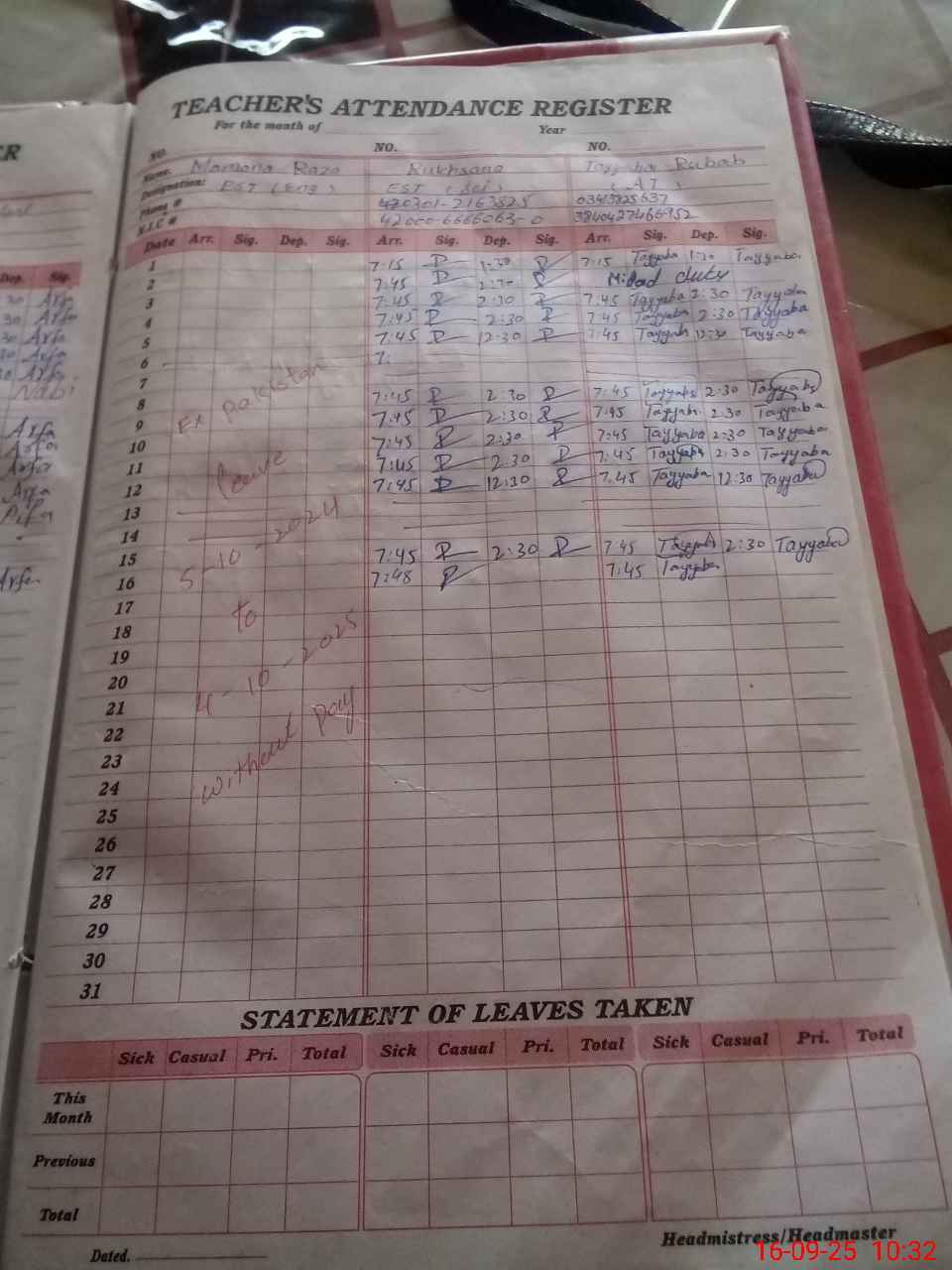 | Name: SA**** ZU**** Designation: (School Headmaster's/Headmistress's) S.S.T.(Arts) Phone/Cell Number: 03**** |