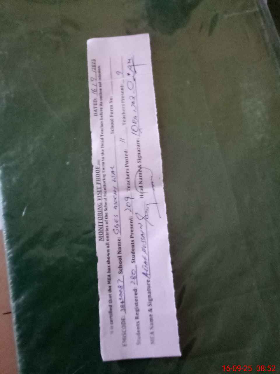 | Certified that this School was Inspected by the Undersigned MEA/DMO Today and the Information Stated Above is as Per Record. | |||||