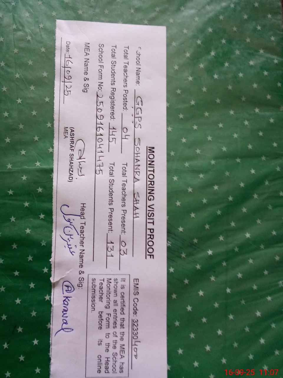 | EMIS Code: 32330400 | Name of School: GGPS SONHARA SHAH | |||
