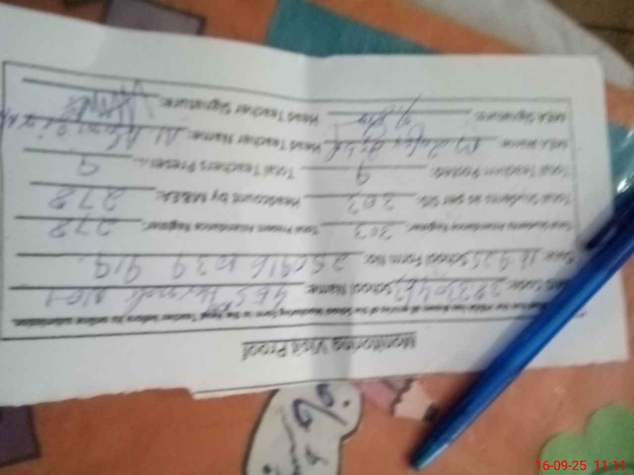 | Name: Mu**** Al**** Ma**** Designation: (School Headmaster's/Headmistress's) SST Phone/Cell Number: 03**** |