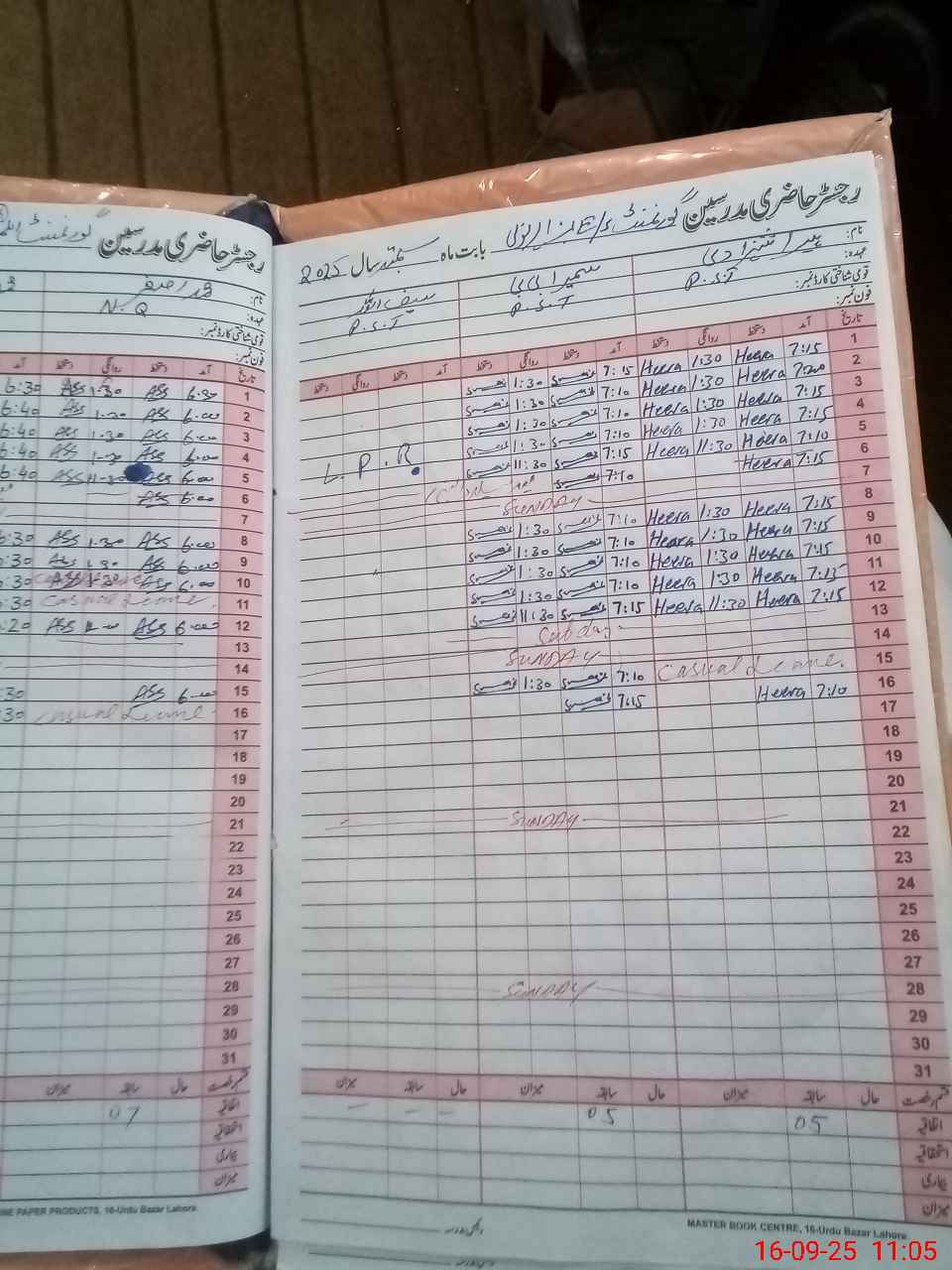 | CNIC | Full Name | Designation | R/C | Absence During Last Calender Month |