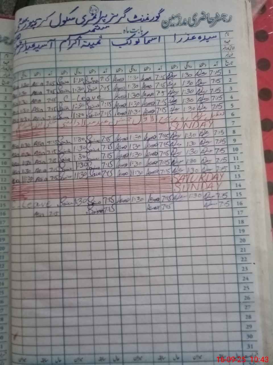 | Leave | Duty | Absent | Maternity | Medical | Ex- Pak |
