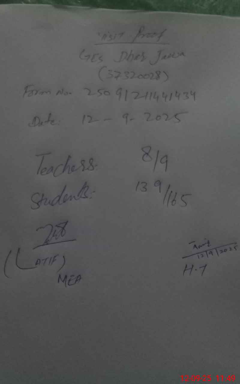| EMIS Code: 37320028 | Name of School: GES DHAR JAWA | |||