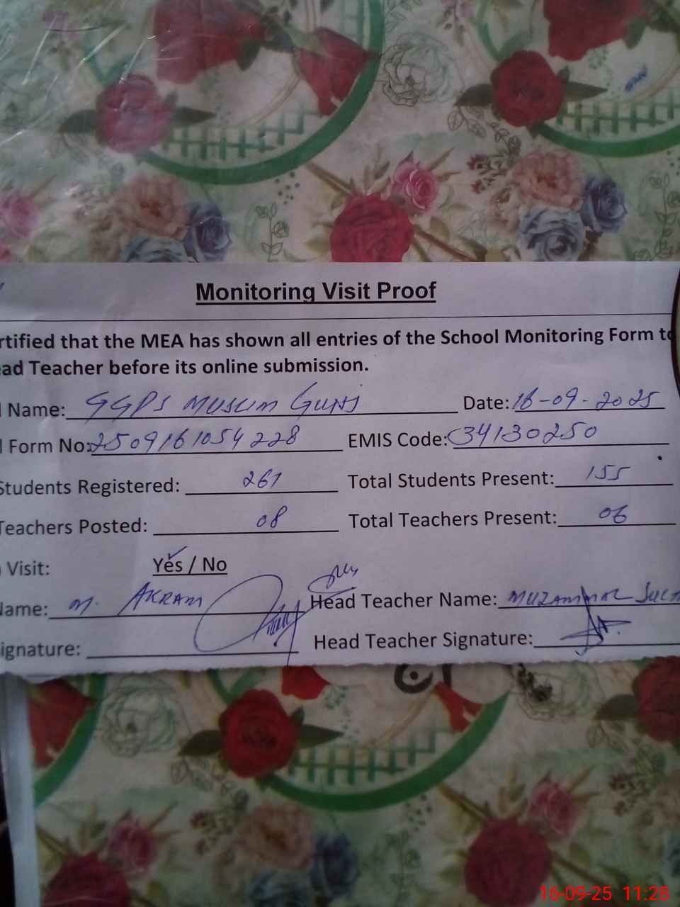 | Certified that this School was Inspected by the Undersigned MEA/DMO Today and the Information Stated Above is as Per Record. | |||||