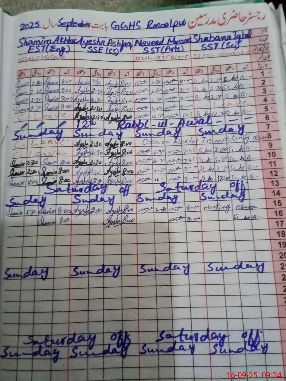| 35**** | Ra**** Ta**** | EST | Regular | 0 | 0 | 0 | 0 | 0 | 0 | 0 | 0 | 0 | Absent (Un-Authorized) |