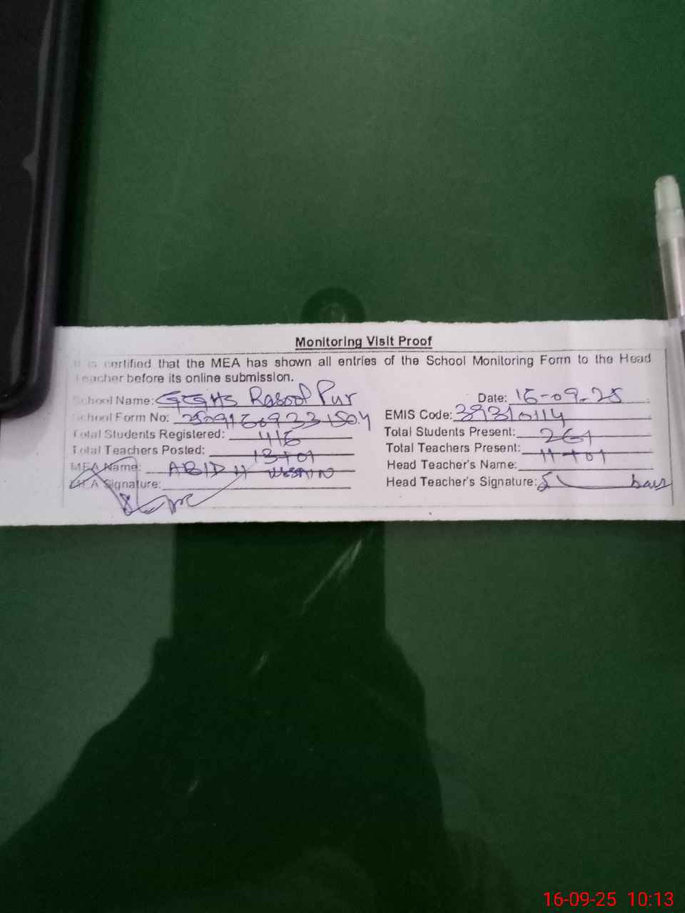 | EMIS Code: 39310114 | Name of School: GGHS RASOOL PUR | |||