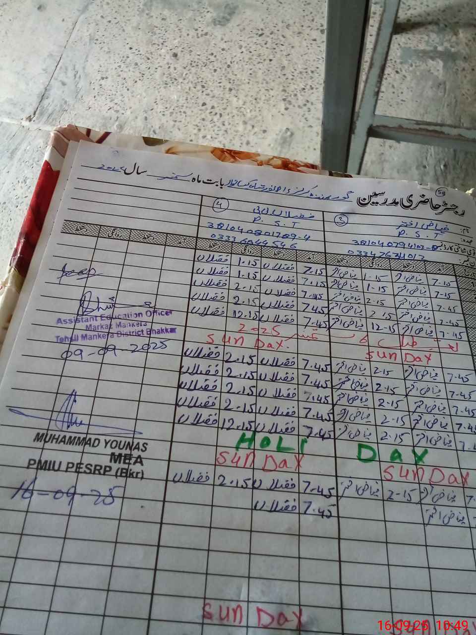 | District: BHAKKAR | Tehsil: MANKERA | Markaz: MANKERA - FEMALE | Level: Primary | |