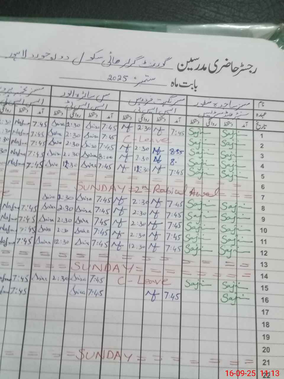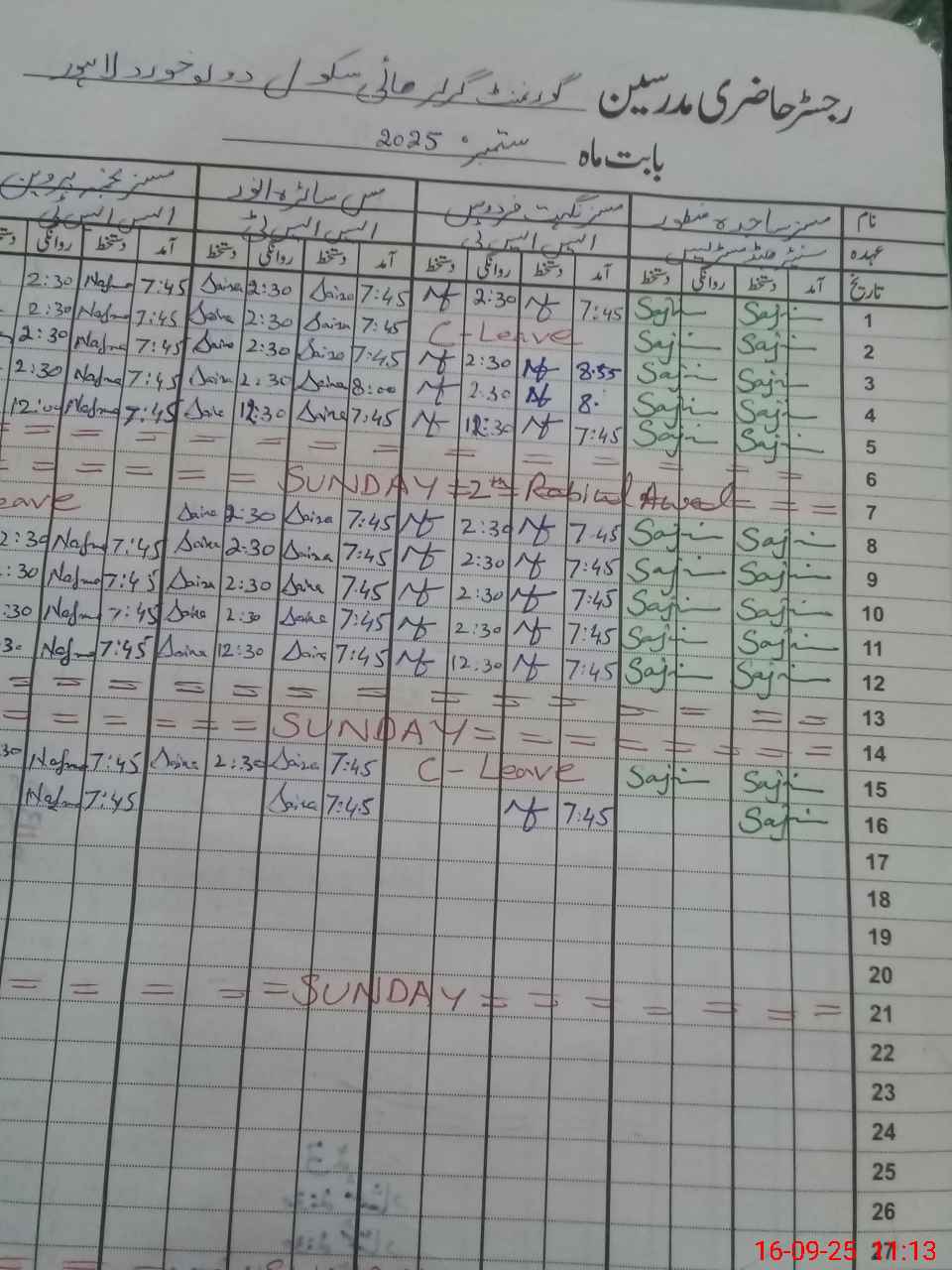 | CNIC | Full Name | Designation | R/C | Absence During Last Calender Month |
