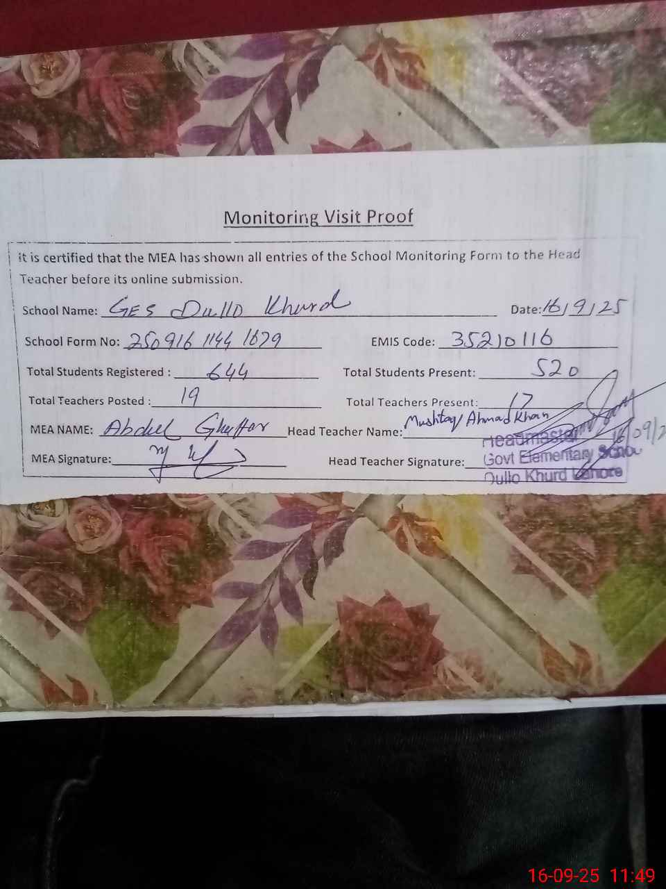 | EMIS Code: 35210116 | Name of School: GES DULLO KHURD | |||