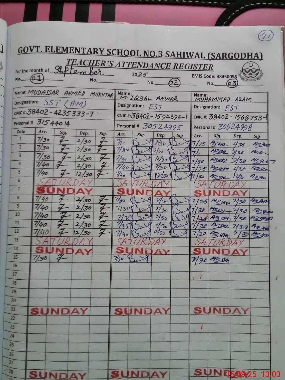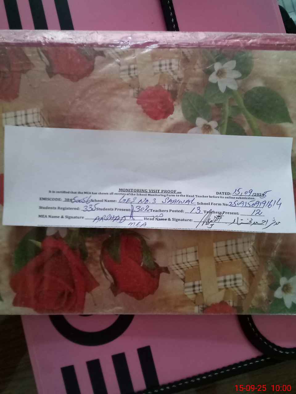 | EMIS Code: 38450056 | Name of School: GES NO.3 SAHIWAL | |||
