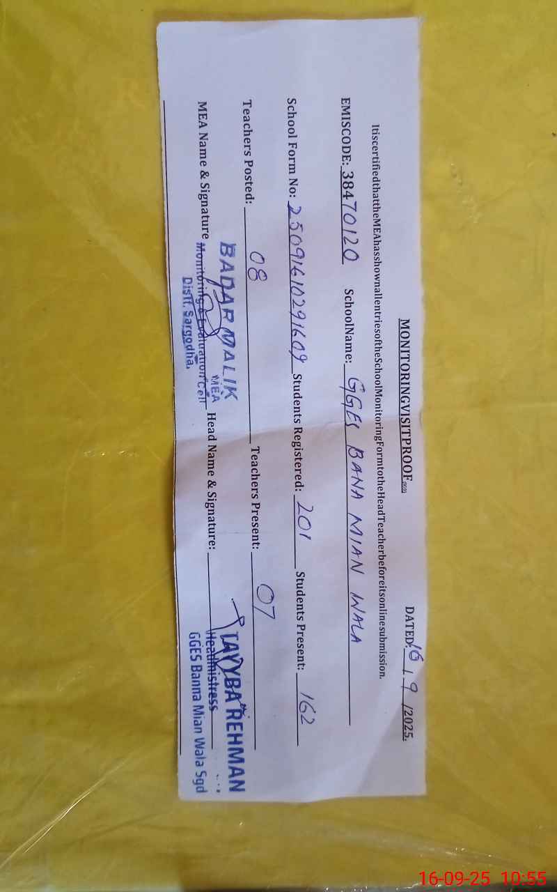 | EMIS Code: 38470120 | Name of School: GGES BANA MIAN WALA | |||