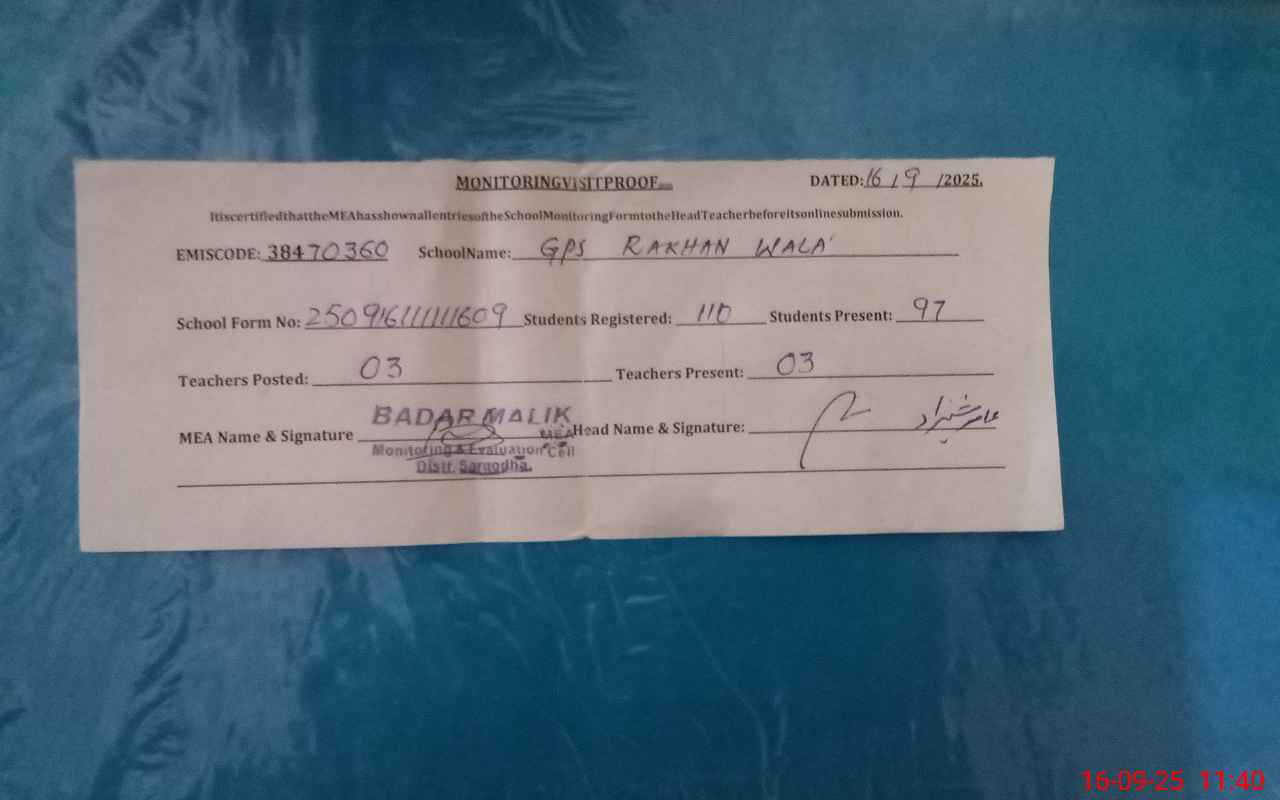 | EMIS Code: 38470360 | Name of School: GPS RAKHAN WALA | |||