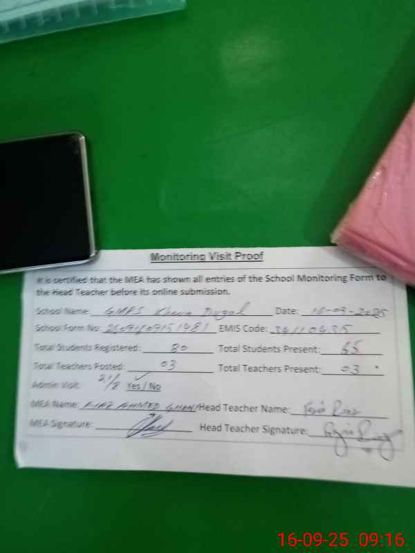 | EMIS Code: 34110435 | Name of School: GMPS KHEVA DUGAL | |||