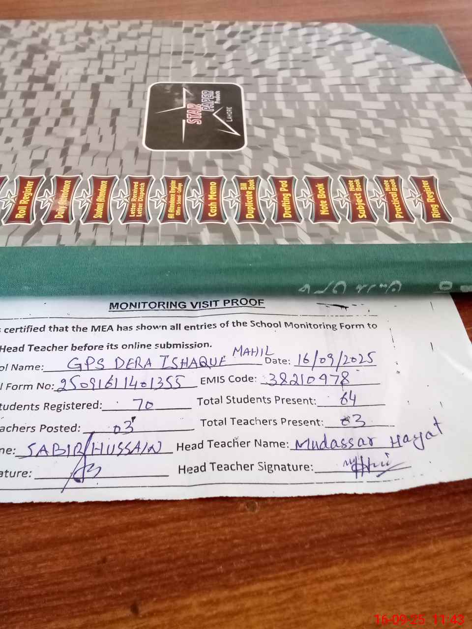 | EMIS Code: 38210978 | Name of School: GPS DERA ISHAQUE MAHAL MITHA TIWANA | |||
