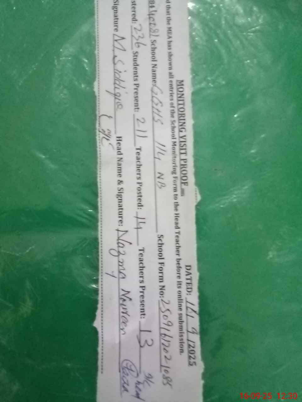 | Certified that this School was Inspected by the Undersigned MEA/DMO Today and the Information Stated Above is as Per Record. | |||||