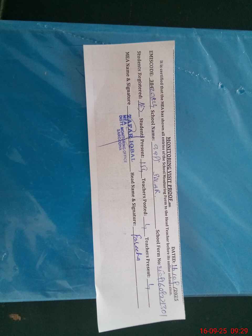 | EMIS Code: 38420824 | Name of School: GGPS SALAR JINAH ABADI CHAK NO. 91-NB | |||