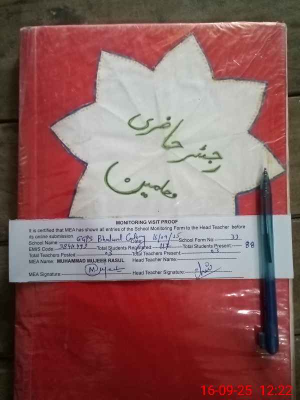 | EMIS Code: 38410493 | Name of School: GGPS BHALWAL COLONY | |||