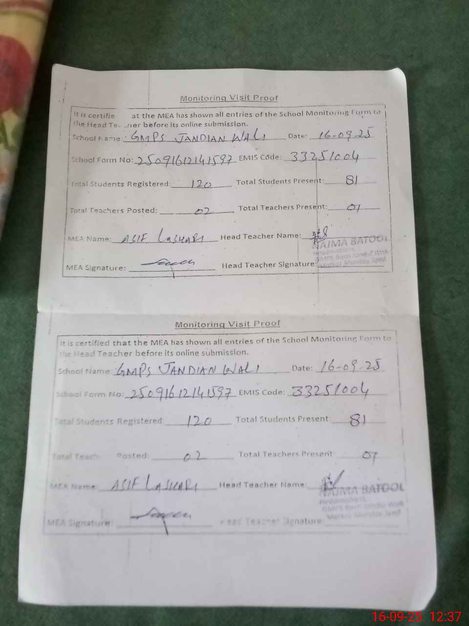 | EMIS Code: 33251004 | Name of School: GMPS BASTI JANDIAN WALI | |||