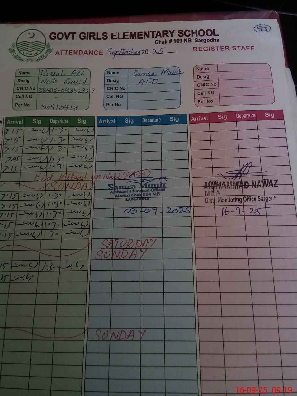 | Monitoring Date: 16-09-2025 | Start Time: 16-09-2025 09:17 AM | End Time: 16-09-2025 09:41 AM | Name of MEA: MU**** NA**** | |