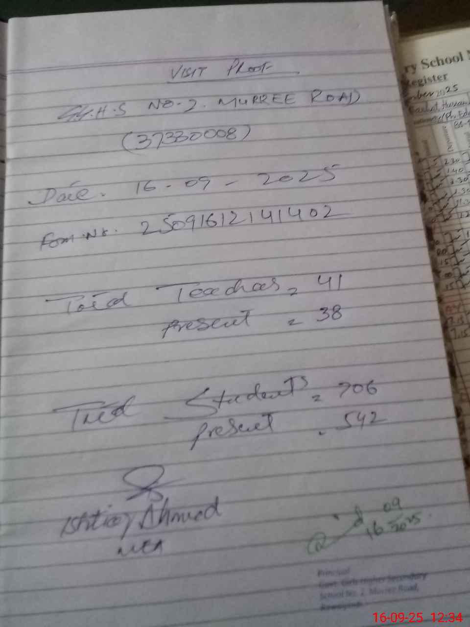 | EMIS Code: 37330008 | Name of School: GGHSS NO 2 MURREE ROAD RWP | |||