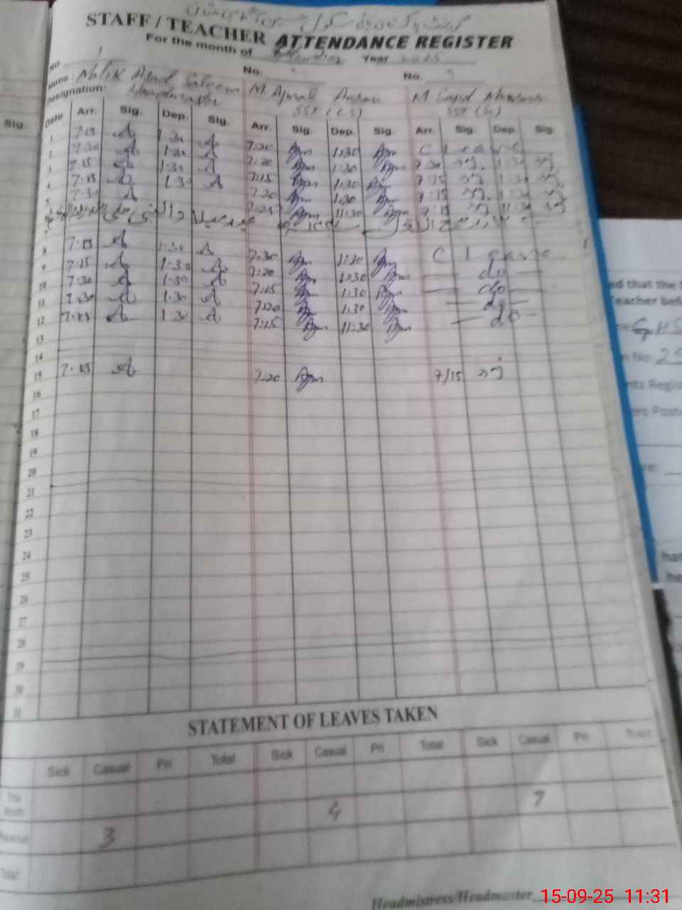 | Name: As**** Sa**** Designation: (School Headmaster's/Headmistress's) HEADMASTER Phone/Cell Number: 03**** |