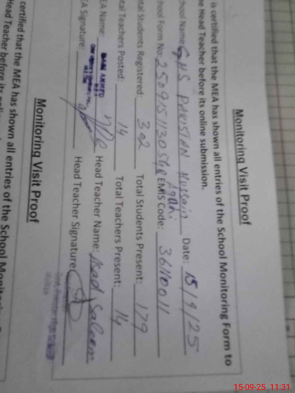 | EMIS Code: 36110011 | Name of School: GHS PAKISTAN HUSSAIN AGAHI | |||