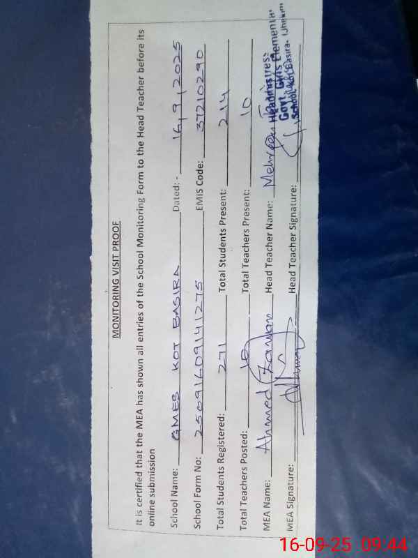 | EMIS Code: 37210290 | Name of School: GMES KOT BASIRA | |||