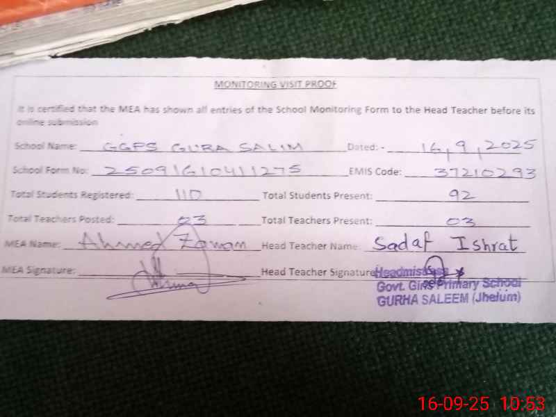 | EMIS Code: 37210293 | Name of School: GGPS GURRA SALIM | |||