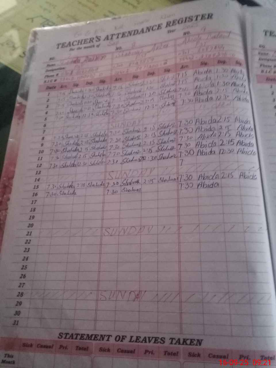 | Name: RO**** SH**** Designation: (School Headmaster's/Headmistress's) S.S.T.(Arts) Phone/Cell Number: 03**** |