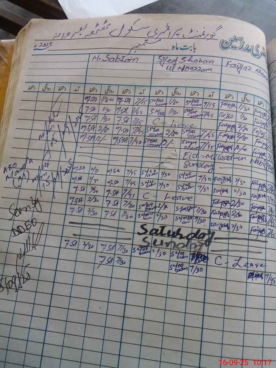 | CNIC | Full Name | Designation | R/C | Absence During Last Calender Month |
