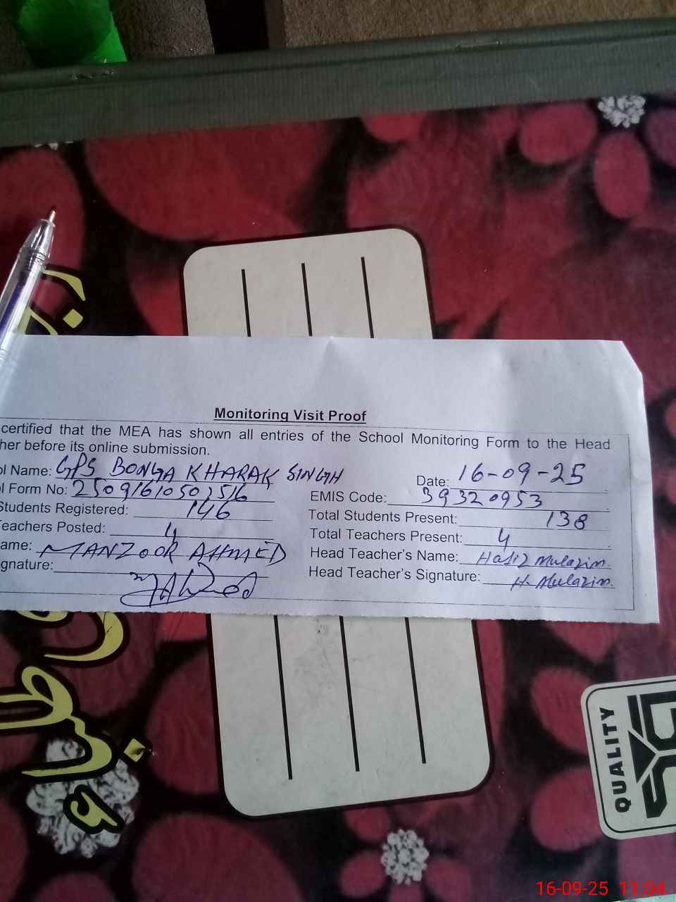 | EMIS Code: 39320953 | Name of School: GPS BONGA KHARAK SINGH | |||
