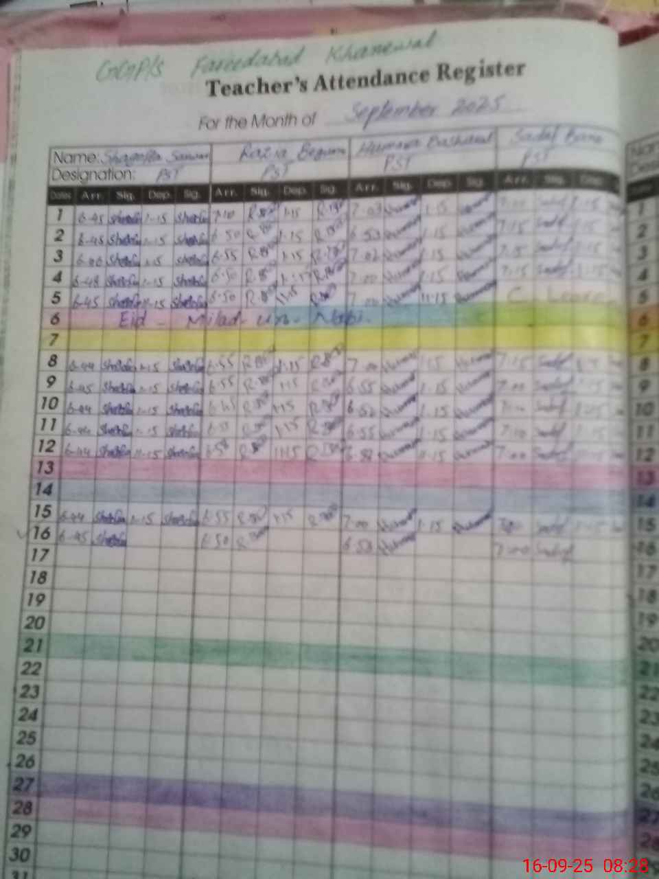 | Name: SH**** SA**** Designation: (School Headmaster's/Headmistress's) PST Phone/Cell Number: 03**** |