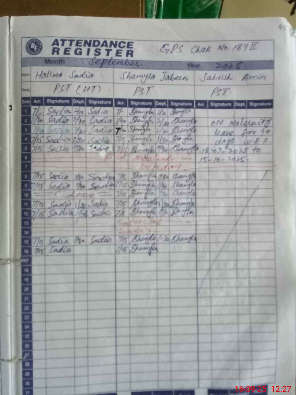 | 34**** | Sa**** Am**** | PST | Regular | 31 | 0 | 0 | 31 | 0 | 0 | 0 | 0 | 0 | Maternity |