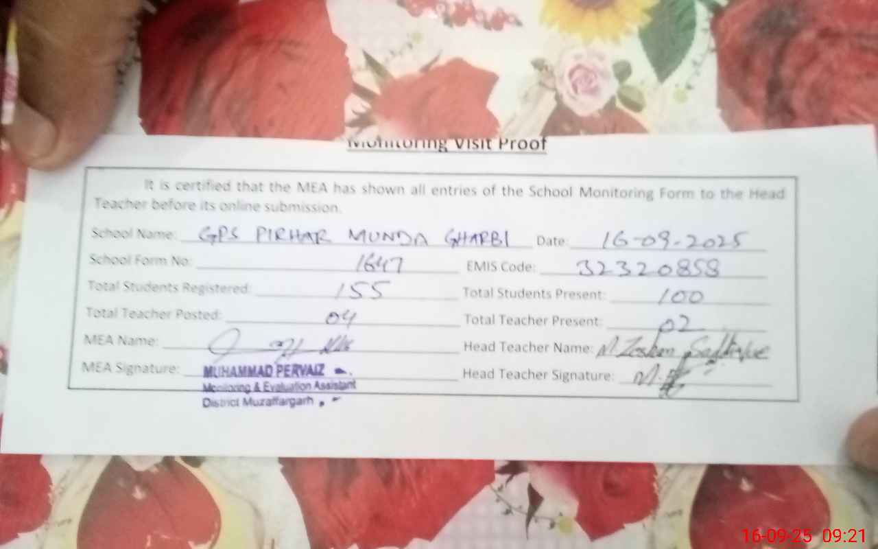 | EMIS Code: 32320858 | Name of School: GPS PIRHAR MUNDA GHARBI | |||