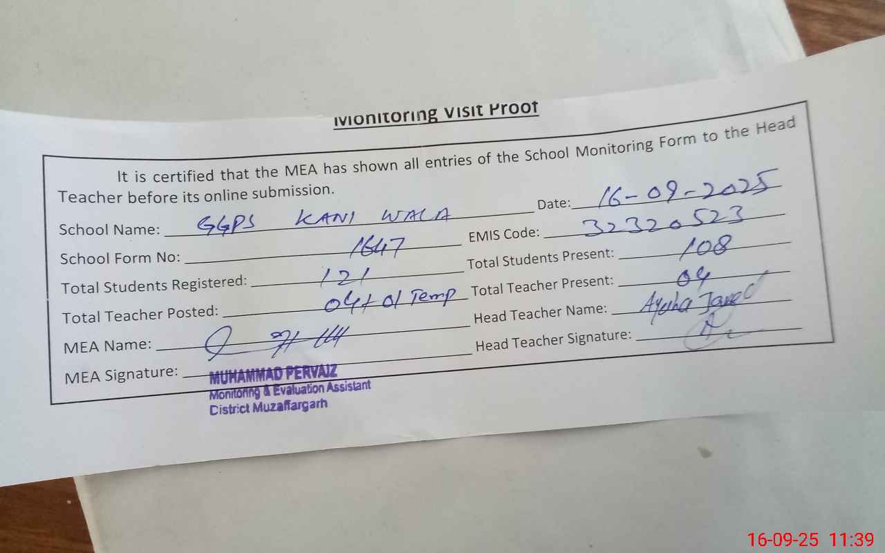 | EMIS Code: 32320523 | Name of School: GGPS KANI WALA | |||