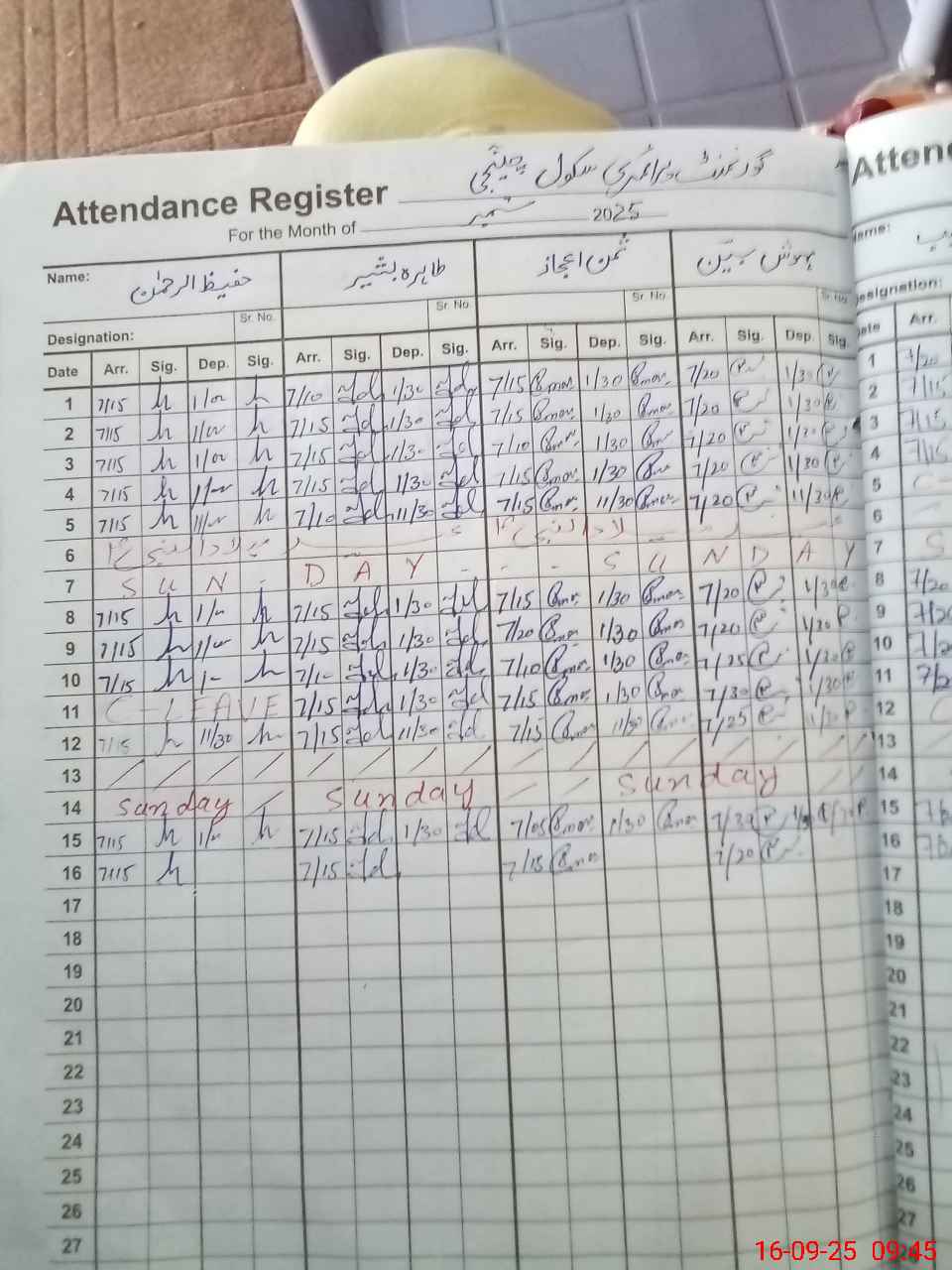 | 61**** | Mu**** Am**** Kh**** | PST | Temporary | 0 | 0 | 0 | 0 | 0 | 0 | 0 | 0 | 0 | Maternity |