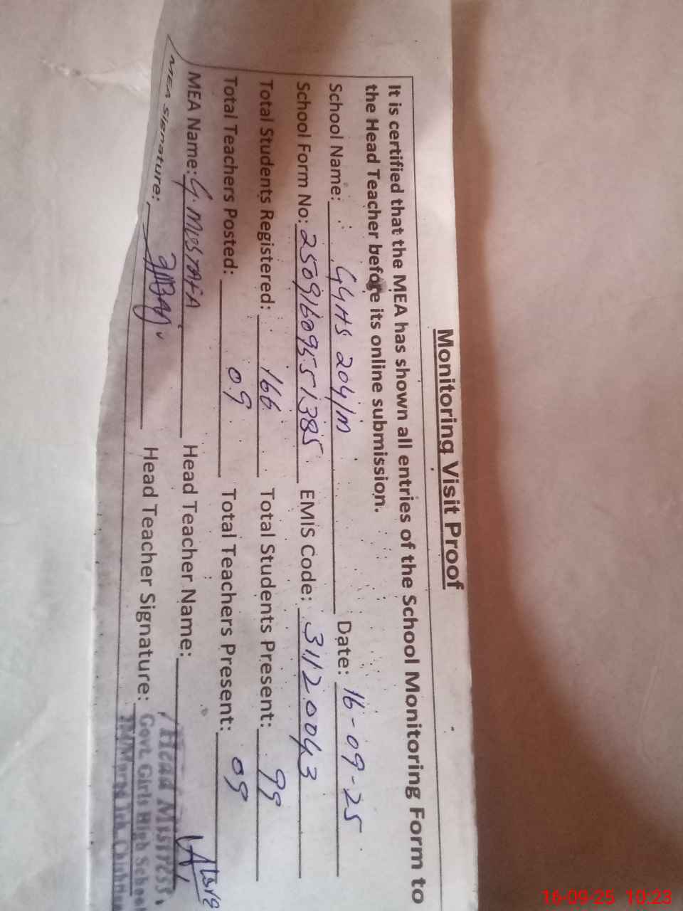 | EMIS Code: 31120043 | Name of School: GGHS CHAK NO. 204/M (WEST) | |||