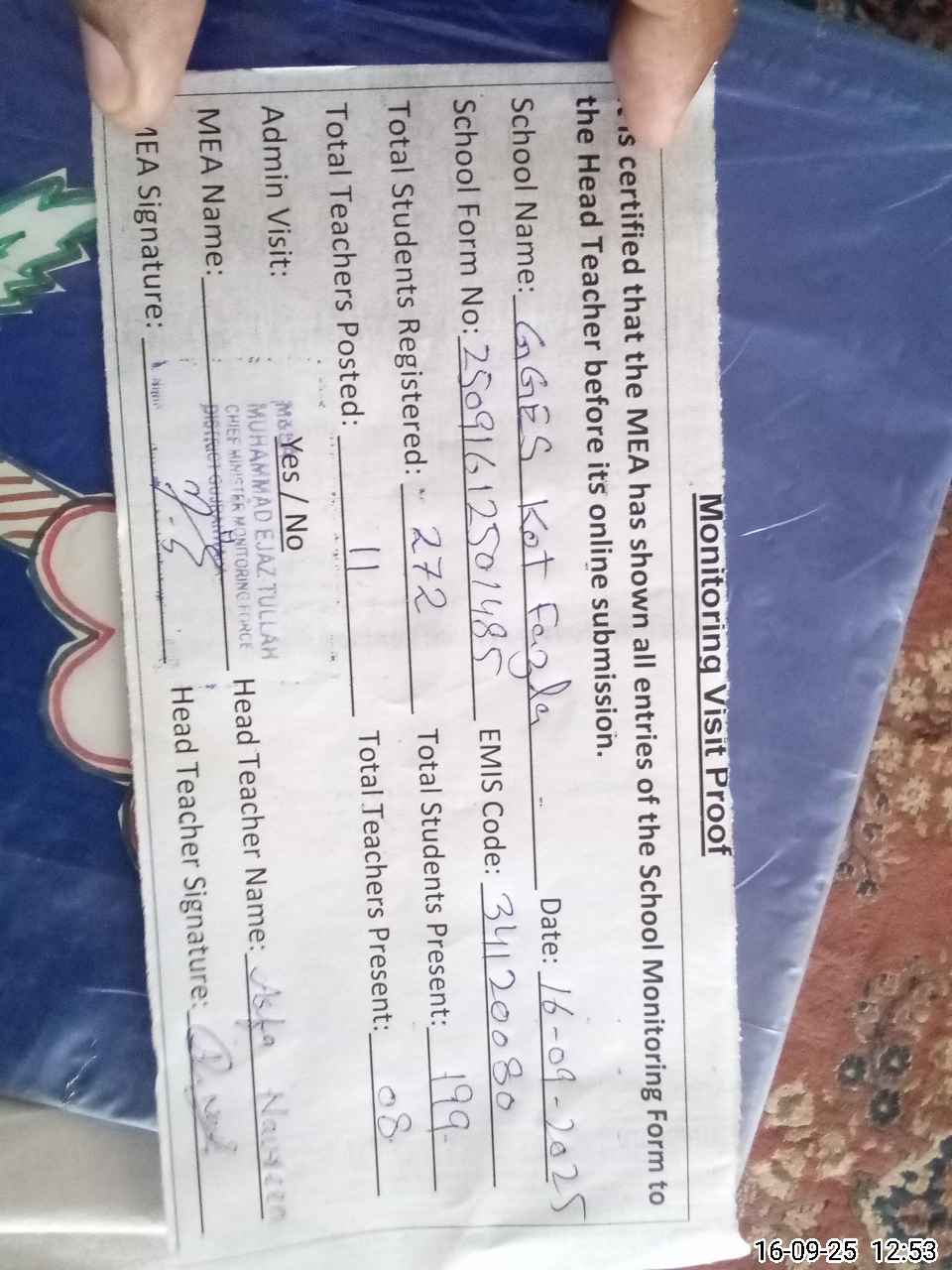 | EMIS Code: 34120080 | Name of School: GGES KOT FAZLA | |||