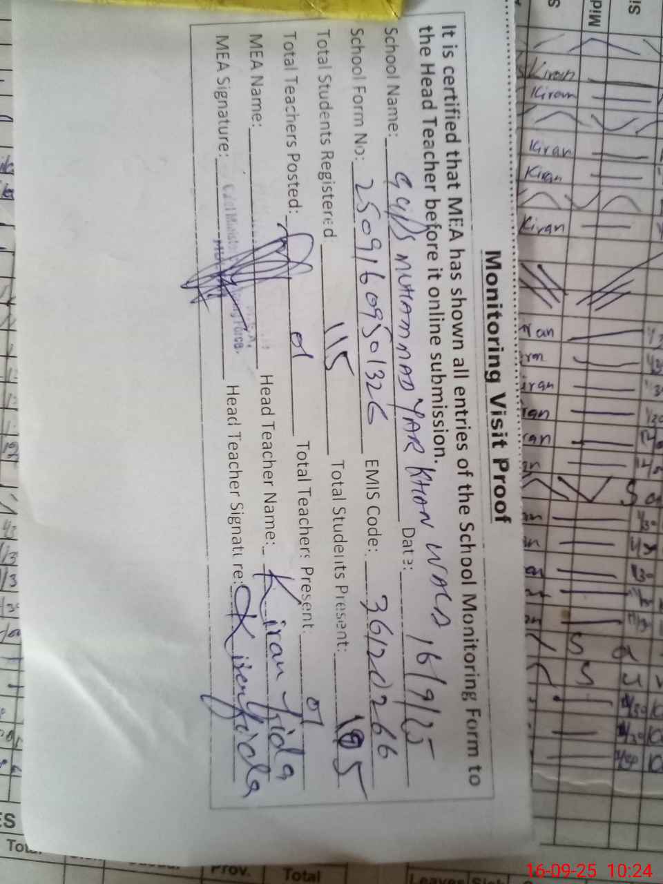 | Monitoring Date: 16-09-2025 | Start Time: 16-09-2025 09:50 AM | End Time: 16-09-2025 10:24 AM | Name of MEA: MU**** YA**** | |
