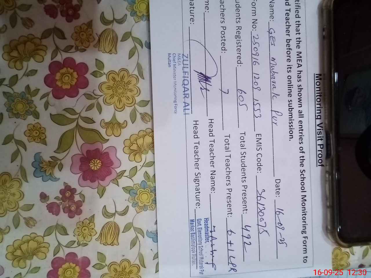| EMIS Code: 36130075 | Name of School: GES MUBARAK PUR | |||